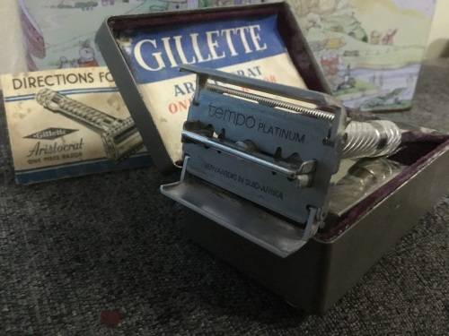 Vintage boxed ,Gillette Aristocrat one piece RAZOR  very good condition for its age .
