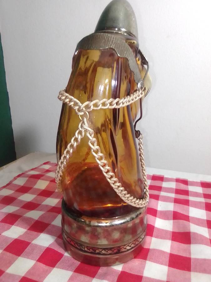 Musical horses head brown glass decanter plays "how dry am I" 13x24cm