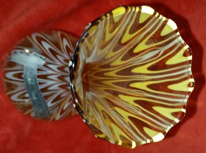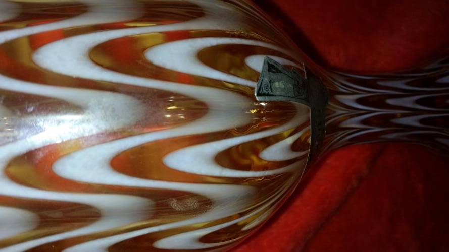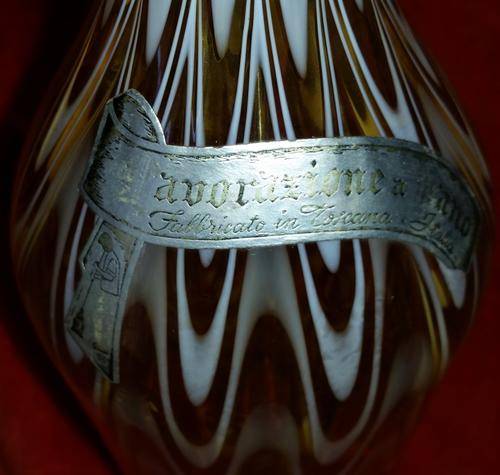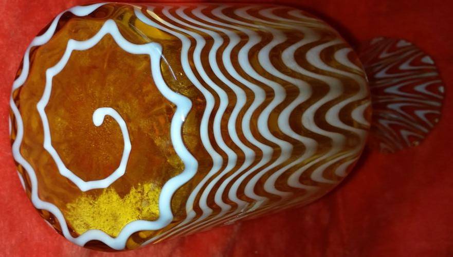 This is a totally stunning Art Glass Vase from the 1940s - 1950s that is in absolutely immaculate condition. It still has its original sticker which reads: Lavorazione a mano, Fabbricato in Toscana, Italia but has some wear. Which basically means that it was handmade in Toscana, Italy.This vase in particular is just absolutely beautiful. The design is so timeless this piece will fit into any decor whether it is vintage or modern. The pictures of this piece just do not do it justice, it is twice as nice in person. Height of vase is 31cm