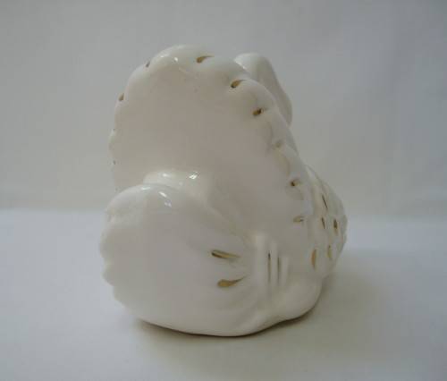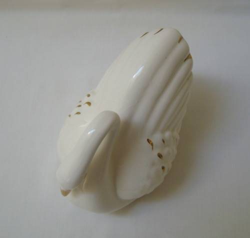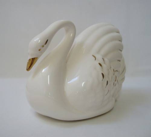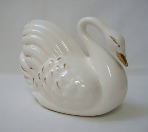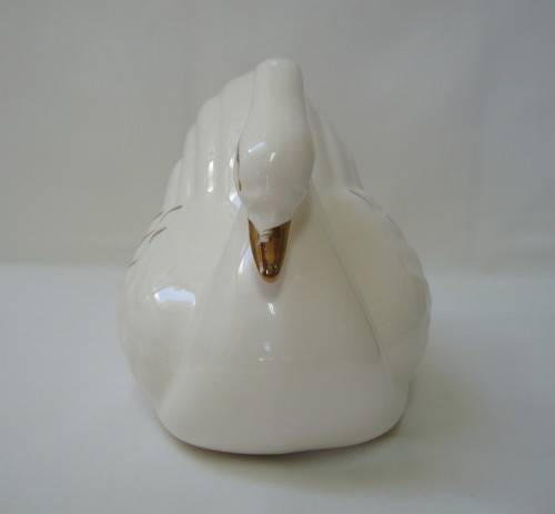 An ivory glazed ceramic swan figurine, decorated with gilt beak, eyes and feather tips.
