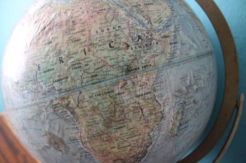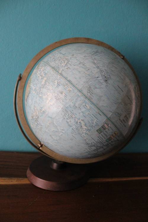 Other than this easy to fix defect, the globe is in great condition with its solid wood base, brass fittings and textured maps