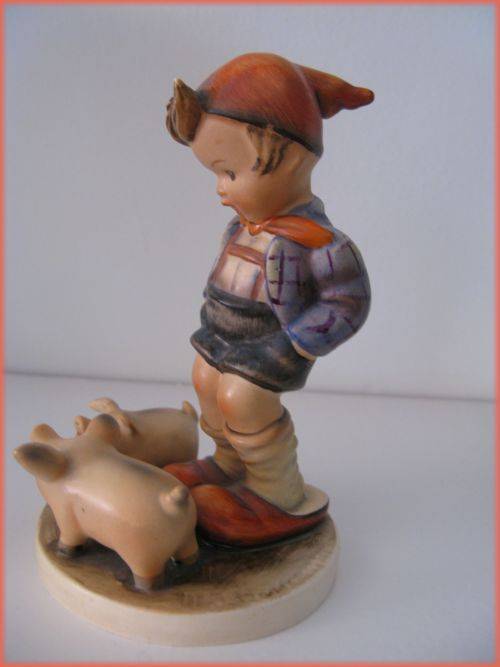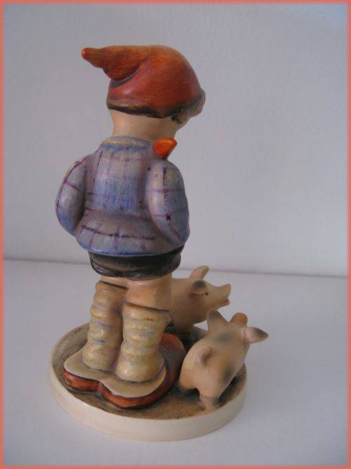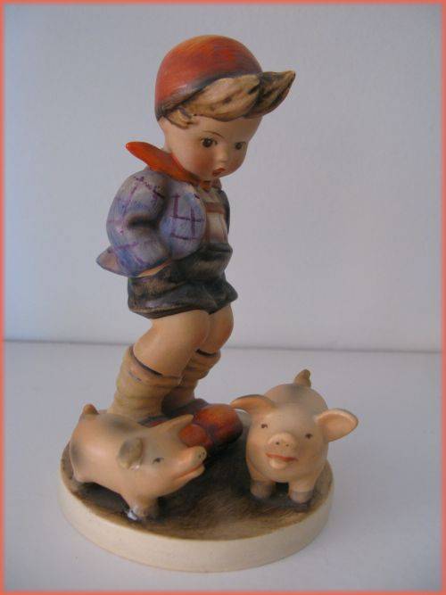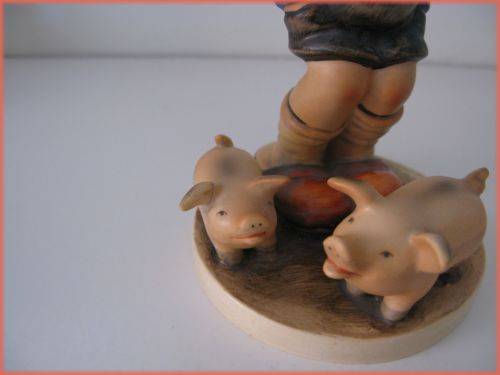 A vintage Goebel Hummel figurine of a boy with 2 pigs from the series "The visit to the farm". Made around 1972.