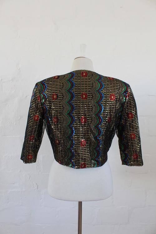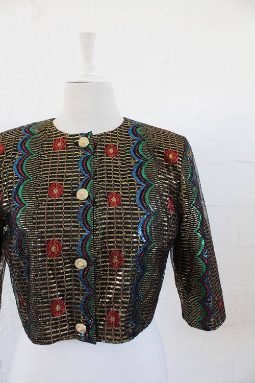 VINTAGE GOLD LAME CROPPED 3/4 SLEEVE JACKET TOP - SIZE 14