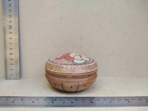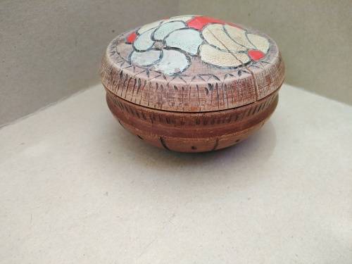 Vintage! Hand Carved - Round Floral - Trinket Box with Lid