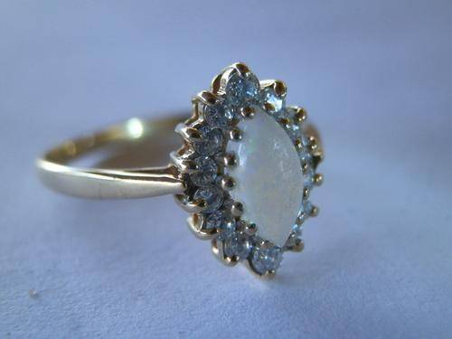 Vintage gold opal and sapphire ring with Birmingham goldsmith hallmark