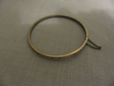 Stunning Vintage gold plated hinged bangle with safety chain size 6.5cm dia.
