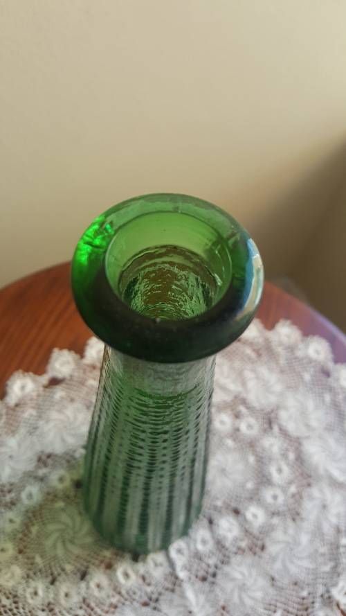 VINTAGE GREEN ITALY GENIE GLASS BOTTLE, IN GOOD CONDITION.