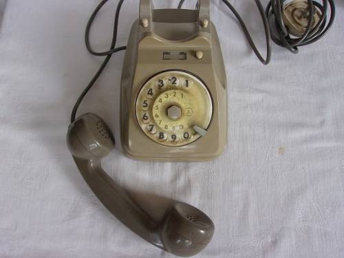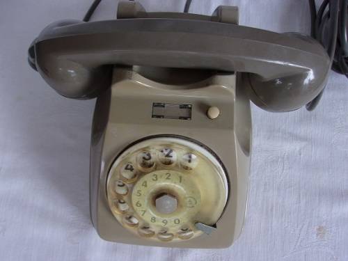 Vintage grey Siemens Telecomunicazioni Auso S62 rotary dial telephone. I would estimate that this old telephone dates to the 1970/80s. It is made from hard plastic with a light grey body and darker grey receiver. The telephone is in good condition, with its original wiring. The rotary number dial still works perfectly. Great buy for the collector.