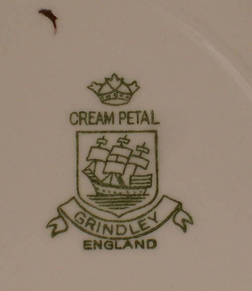 Stamped in green with a Crown, Cream Petal, Sailing Ship in shield, Grindley and England.