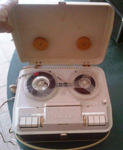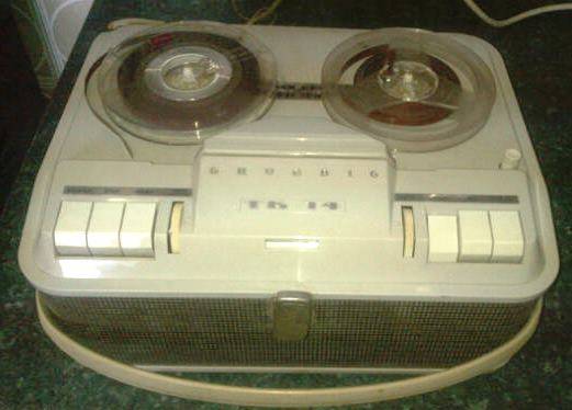 VINTAGE GRUDING TK14 REEL TO REEL RECORDER,+ 2TAPES MACHINE SWITCHS ON TAPES TURN, AS PER PICS ,NICE COLLECTABLE ITEM SPARES/DECOR!