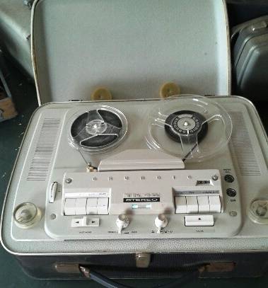 VINTAGE GRUDING TK46 REEL TO REEL RECORDER,+ 2TAPES MACHINE SWITCHS ON TAPES TURN, AS PER PICS ,NICE COLLECTABLE ITEM SPARES/DECOR!
