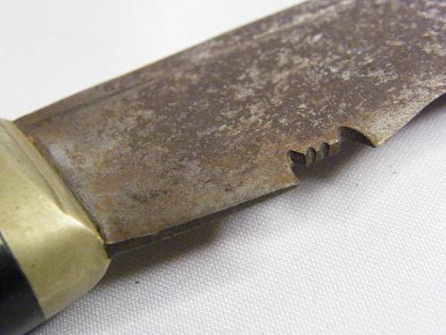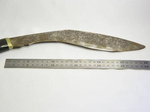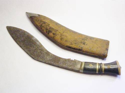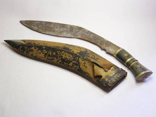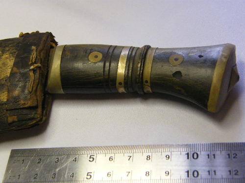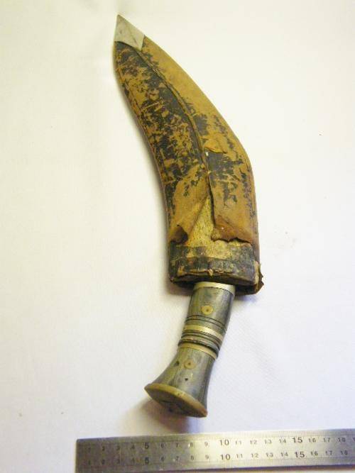 Vintage Gurkha Kukri knife with bone & brass handle - leather clad wood scabbard - as per photo