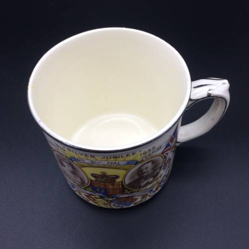 This Silver Jubilee souvenir mug is in excellent condition and measures 8cm in height and 10.5cm in width (handle to edge).
