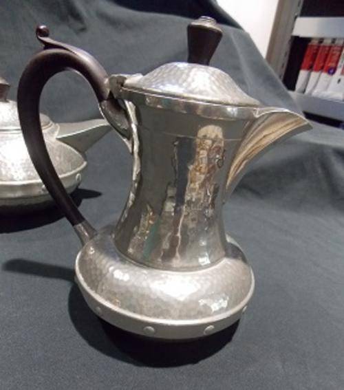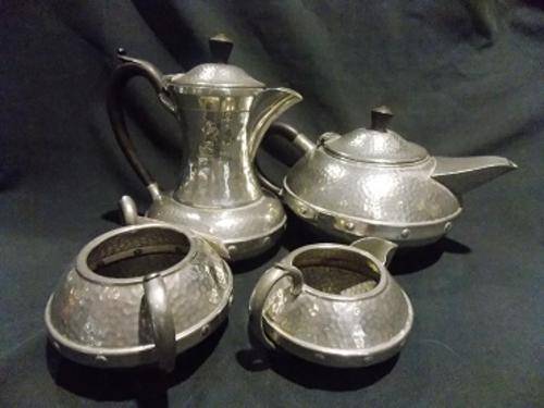 This is a beautiful vintage hammered pewter coffee and tea set with four pieces. There is the tall coffee pot, a short and fat tea pot, sugar bowl and milk jug. It was made in the Sheffield area in England where most of the top class pewter is made. To all prospective buyers out there, please remember there is lead in pewter, so please do not use this set, it is for display purposes only. Please ask about postage and courier.