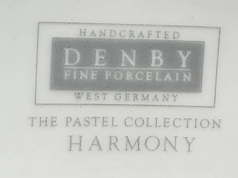 VINTAGE HAND CRAFTED DENBY FINE PORCELAIN WEST GERMANY VASE, THE PASTEL COLLECTION "HARMONY". THIS VASE IS IN A WELL PRESERVED CONDITION WITH NO CHIPS OR CRACKS AND IT MEASURES 15 CM HIGH AND 10 CM IN DIAMETER AT THE BASE.