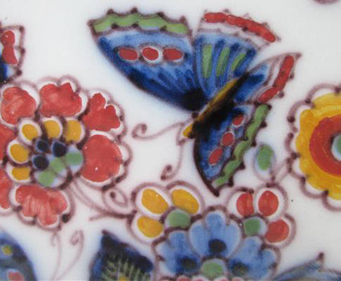 VINTAGE HAND PAINTED DUTCH MAKKUM DECORATIVE WALL PLATE, BEAUTIFULLY PAINTED WITH BUTTERFLIES AND FLOWERS, CONDITION GOOD BUT IT DOES HAVE A HAIRLINE CRACK TO THE BACK WHICH CANNOT BE SEEN FROM THE FRONT OF THE PLATE, ONCE ITS ON THE WALL NO ONE WOULD BE ANY THE WISER !!! LENGTH OF CRACK 4cm..... DIA 23.3cm.