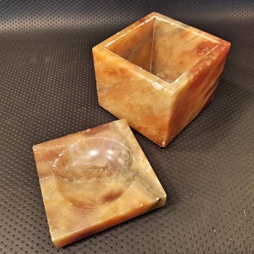 Vintage Handcrafted Italian Alabaster Ashtray and Tobacco Jar!!!