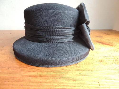 This vintage hat has a lovely large chiffon bow and is in excellent condition. The previous owner has glued a piece of foam on the inside to give a snugger fit, but this can easily be removed. Wear it in style or display it for that vintage feel.