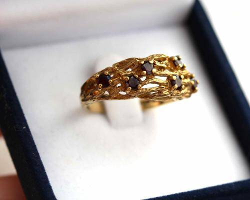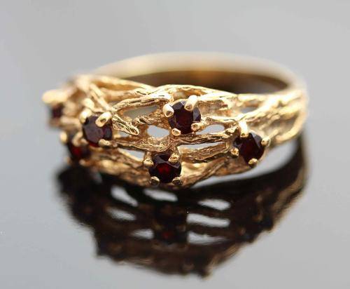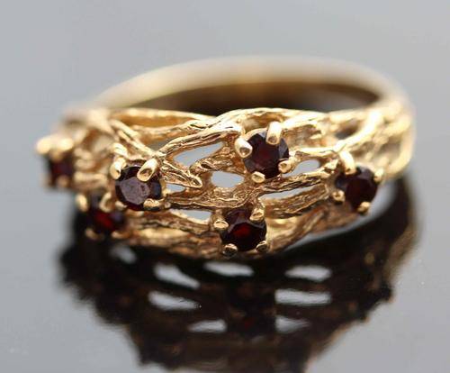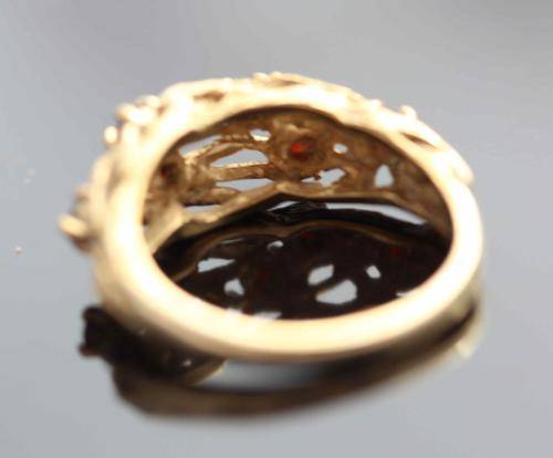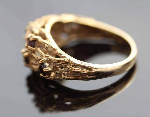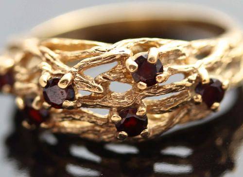 VINTAGE HEAVY GOLD (9ct) AND NATURAL GARNET RING FROM ENGLAND. VERY DIFFERENT DESIGN!