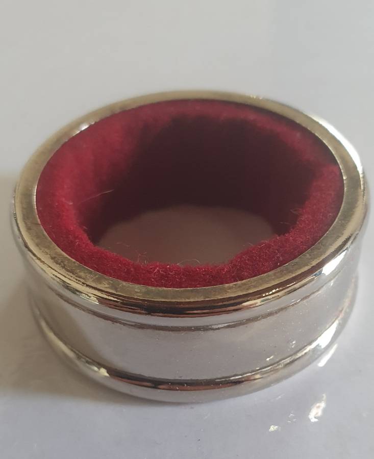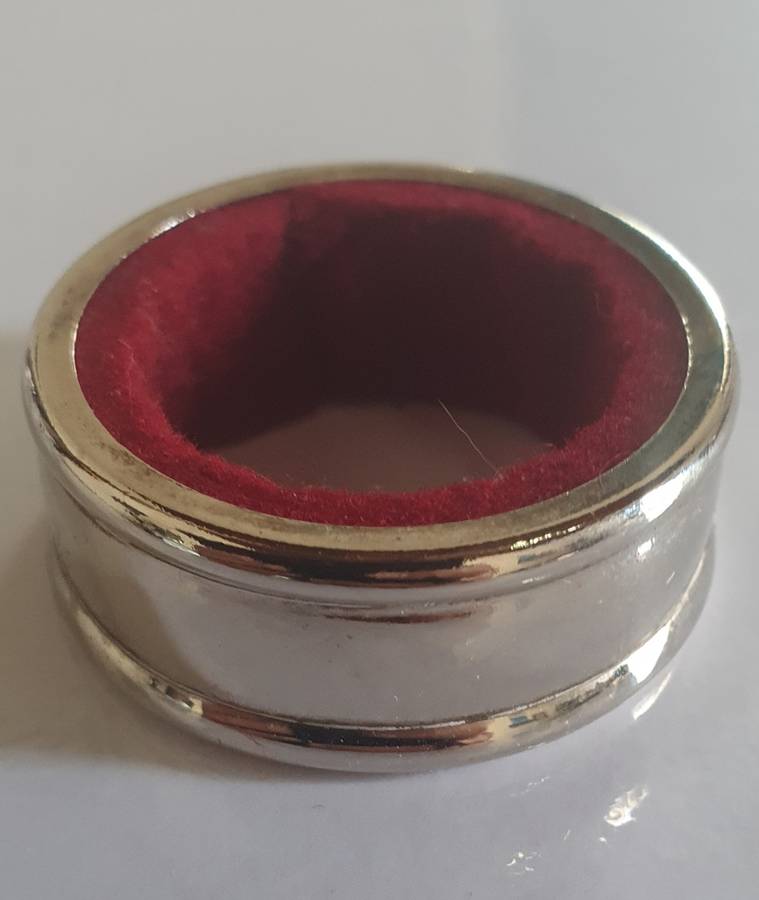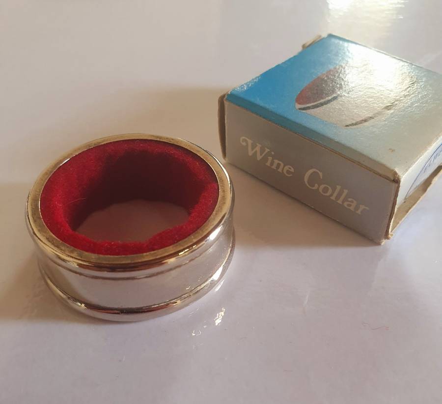 ON AUCTION: VINTAGE HEAVY SILVER PLATED WINE BOTTLE COLLAR WITH RED VELVET INSIDE.