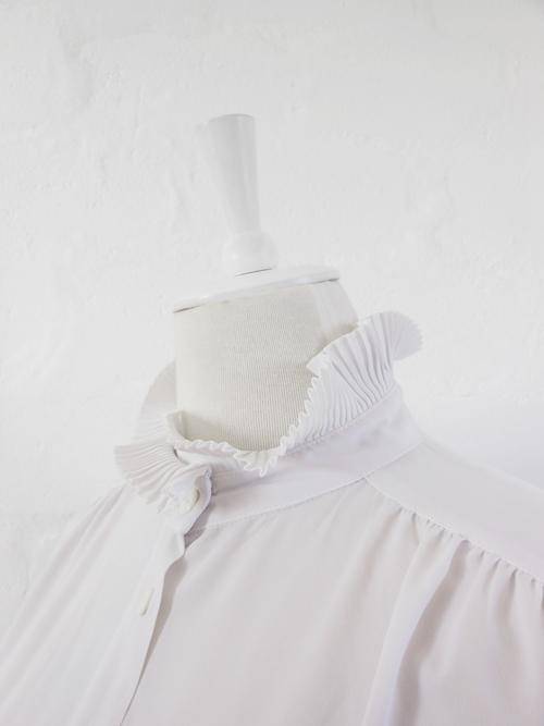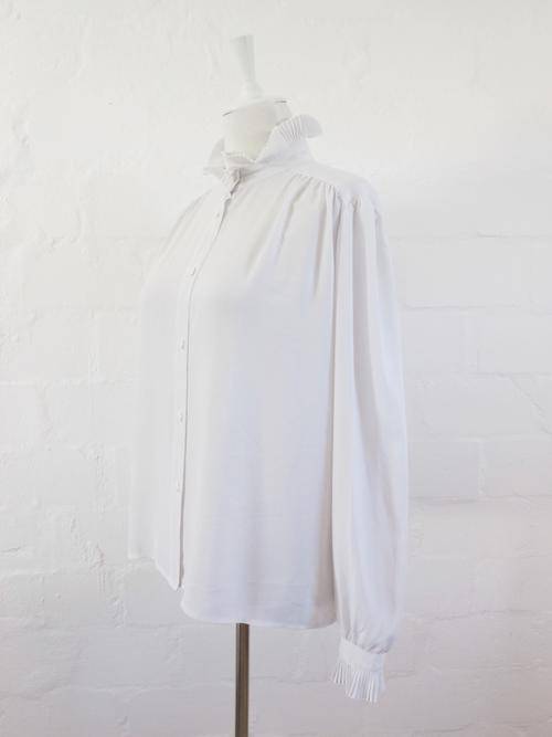 VINTAGE HIGH COLLAR RUFFLE LONG SLEEVE WHITE BLOUSE TOP SHIRT - SIZE 16