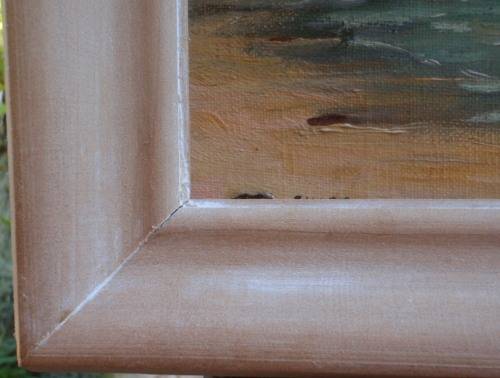 VINTAGE: CIRCA 1965 - SIGNED 'CHIPS 1965' NOT SURE WHO THE ARTIST IS, BUT THIS IS A WONDERFUL OIL PAINTING DEPICTING A VERY SPECIFIC BEACH WITH CAPE HOUSES IN THE 1965's IT IS IN THE ORIGINAL SOLID WOOD FRAME THAT HAS BEEN SANDED DOWN WITH A BLEACHED FINISH - GORGEOUS! SIZE: 56CM X 29CM (TOTAL WITH FRAME) ART SIZE: 48CCM X 21CM