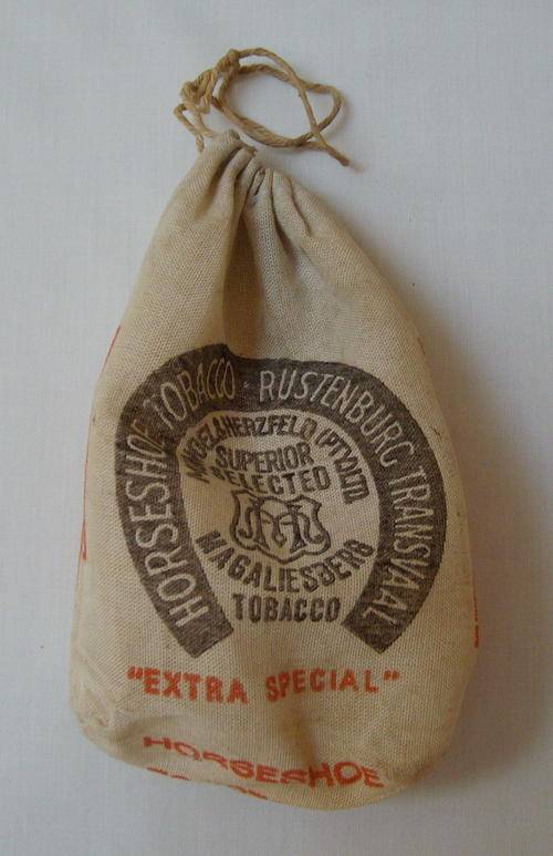 A 100g English / Afrikaans linen pipe tobacco bag, manufactured by