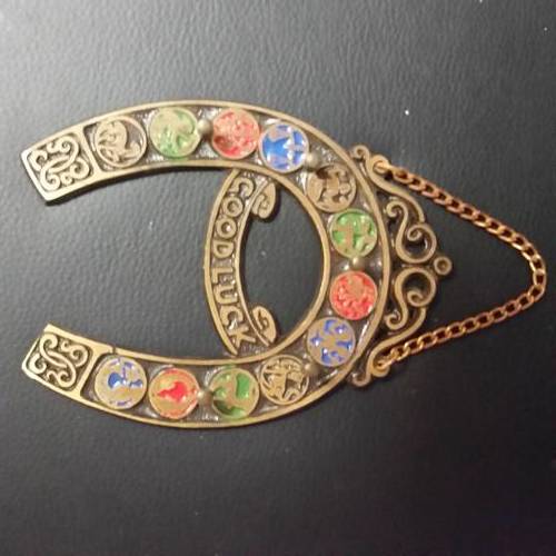 VINTAGE HORSESHOE STAR SIGN [ WALL HANG]GOOD LUCK ITEM [BRASS]
