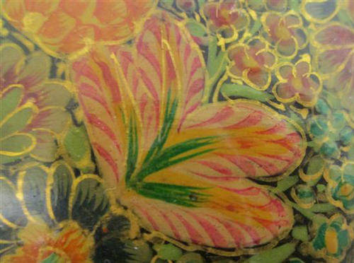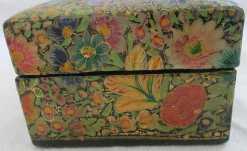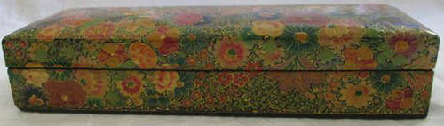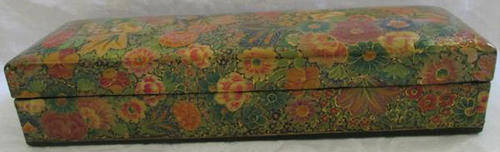 COMPLETLY COVERED IN BEAUTIFUL HAND PAINTED FLOWERS HIGHLIGHTED WITH GOLD, BLACK LACQUER RECTANGULAR BOX PERFECT FOR PENCILS ON YOUR DESK TOP, IN GOOD VINTAGE CONDITION, LENGTH 20cm, WIDTH 6.3cm, DEPTH 4cm.