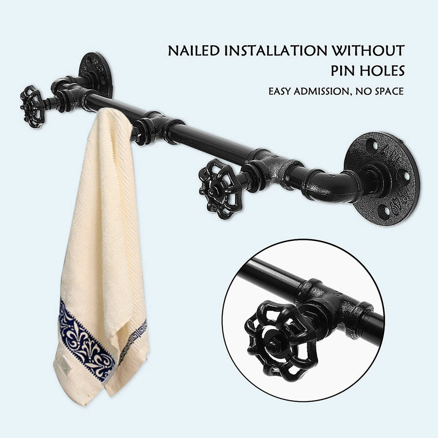 - Retro design metal wall mounted Coat Hooks /Towel Hooks finished in an Antique Black Industrial Pipe Design