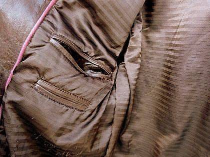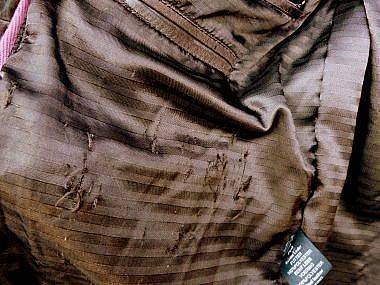 THE LINING IS WORN ON ONE SPOT,THINK IT CAME FROM FINGERNAILS,PLS REFER TO CLOSE UP PICTURE.