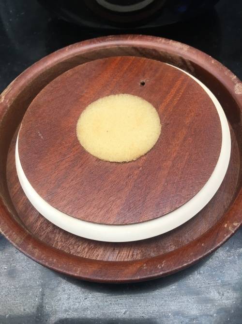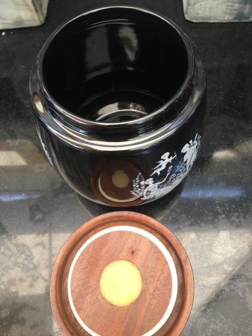 The brown wooden lid has a rubber seal along with the original sponge that sits within an indention on the inside of the lid. If you keep the sponge wet, it keeps the tobacco fresh and moist if used as a humidor. This is a beautiful jar to use as a humidor or canister. Great for tobacco or as a canister for many things.This storage jar is perfect for a woman or man, excellent accent piece and useful.