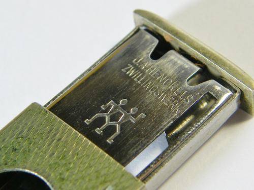 Vintage JA Henckels Zwillingswerk cigar cutter in leather pouch - as per photo
