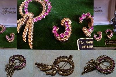 Vintage - 'Jewels by Florenza' - Earrings & Brooch (22ct Hardgold Clad Untarnishable)