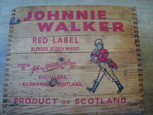 VINTAGE JOHNNIE WALKER RED LABEL SCOTCH WHISKY WOODEN CRATE
