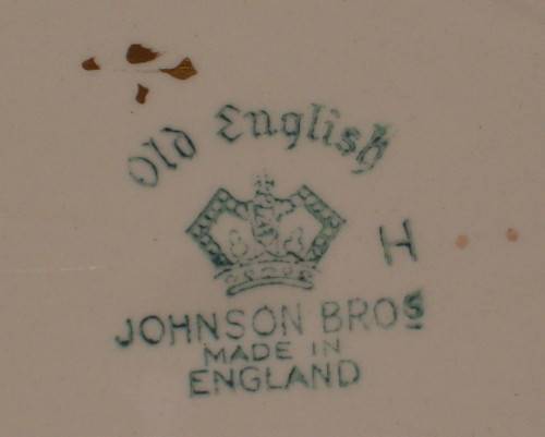 Stamped in green: Old English, Crown, H, Johnson Bros. and Made in England.