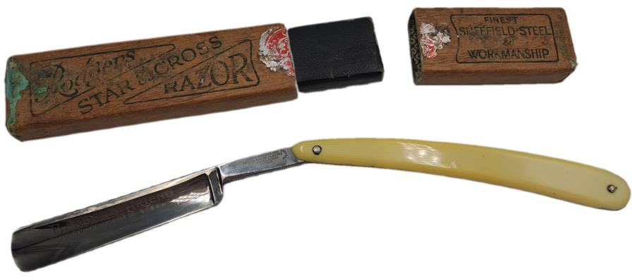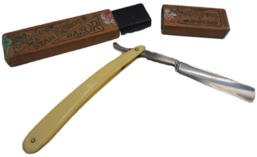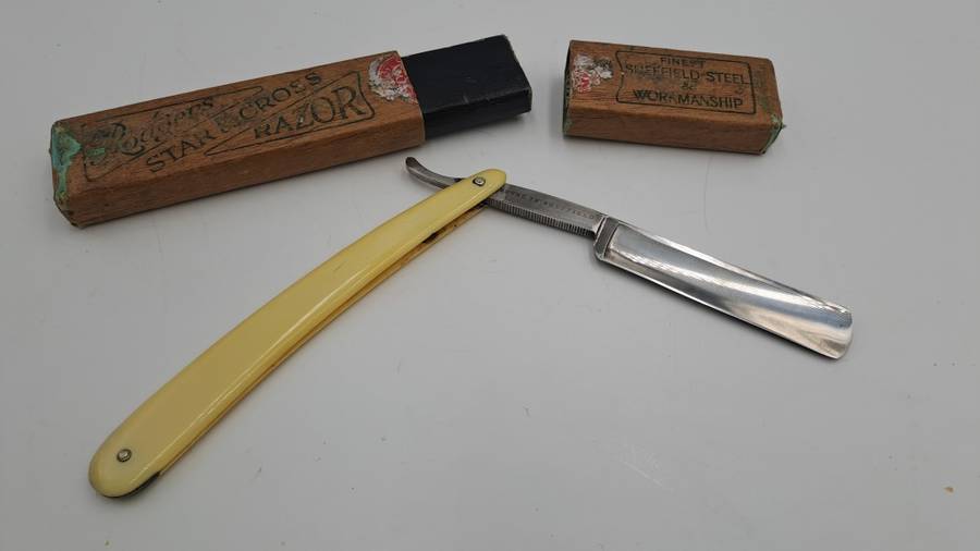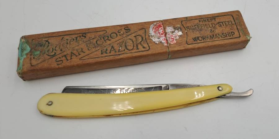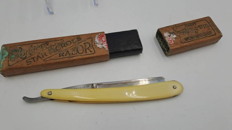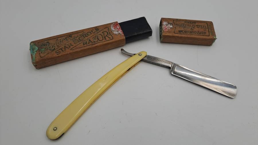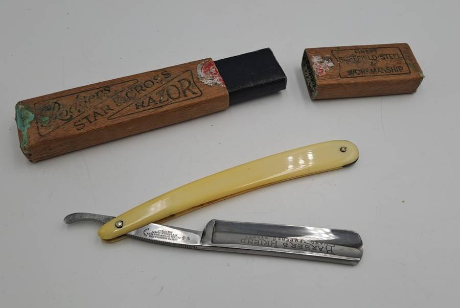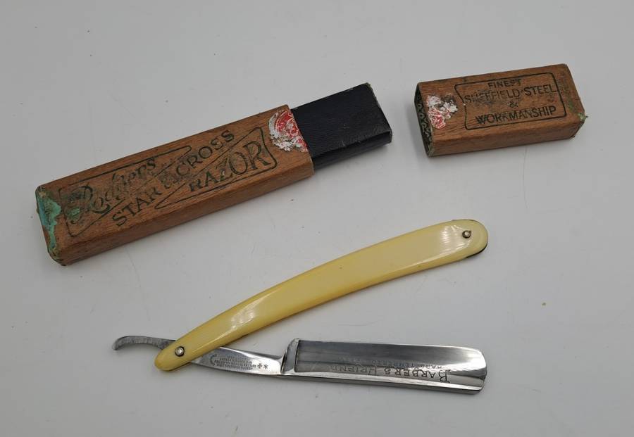 POSTAGE WILL BE COMBINED: Collection in Mondeor Johannesburg:Tip: To save on shipping -Buy more than one of My 1900+ ItemsVintage Joseph Rodgers Star & Cross Barbers Friend cut throat razor -made in Sheffield England with Box 24,2cm open and 15,2cm Closed Good Condition for age -Please see ALL IMAGES - Multiple Images Uploaded - The pictures of the items form part of the description Due to the age of many of our Items there might be some Flaws and Imperfections.Colours depicted in the photos of items may differ from the actual colour of the items due to many factors including the light and the time of day that the photos are taken.I always try to get the description 100% correct with some research but can get it wrong sometimes ..i am not an expert. |