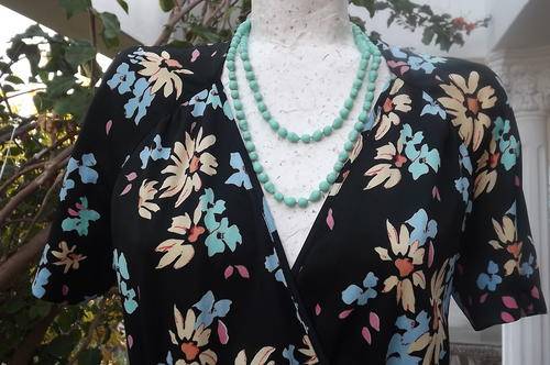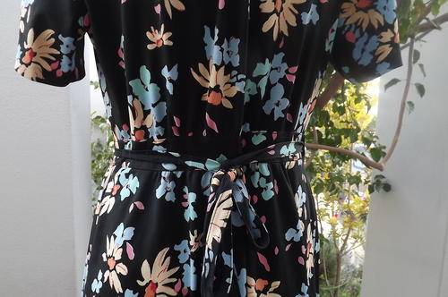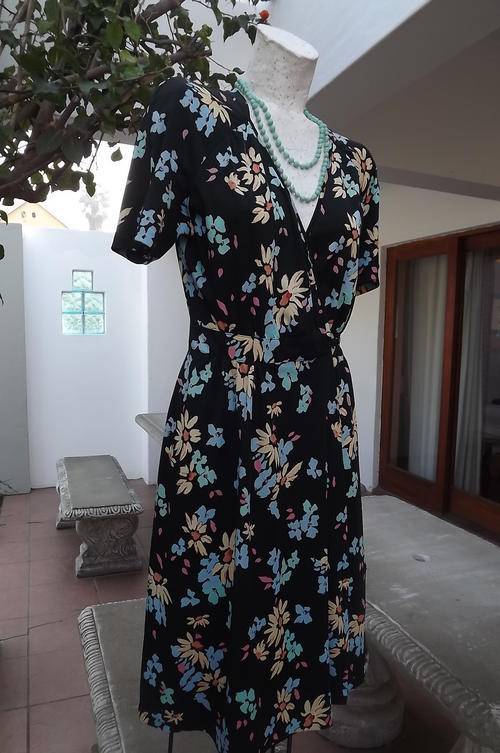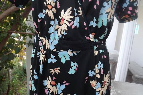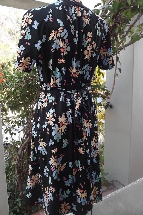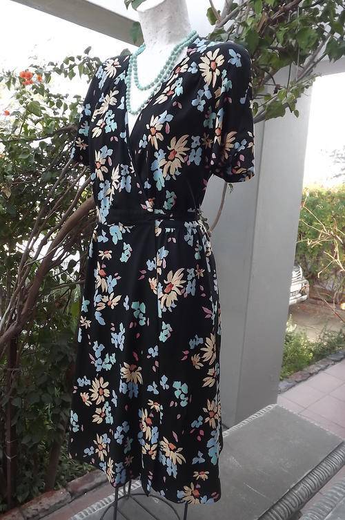 Vintage Julie Whyte Black Floral Fold Over Dress from their "Young Ideas" Range -will fit size 10/34