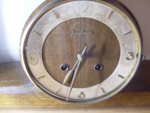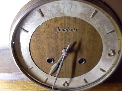 VINTAGE JUNGHANS GERMAN WOODEN MANTLE CLOCK ..PLEASE SEE DISCRIPTION