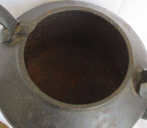 Vintage Kenrick Cast iron kettle.Dimensions:Top to bottom from top of handle to bottom 26.8cm,from mouth to rnd of kettle 29.3cm, opening of top10.6cm,Item is rusted on the inside.Please see condition. Shipping R80.00