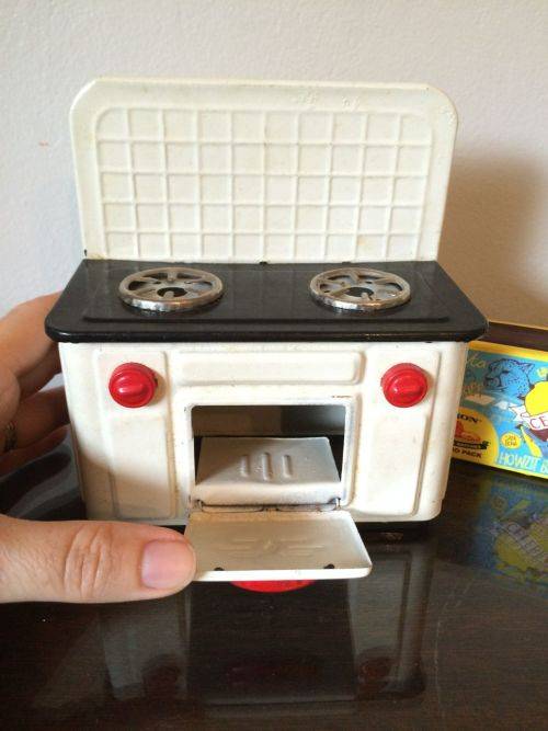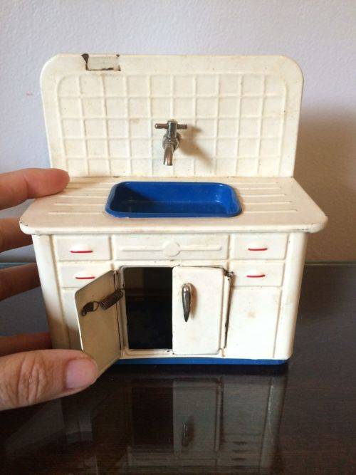 Gorgeous set of vintage dolls house toys. Oven, Kitchen Sink and Ironing board.