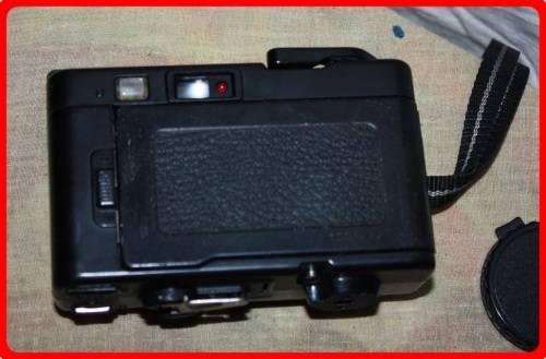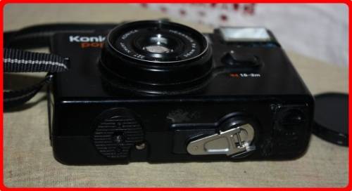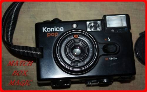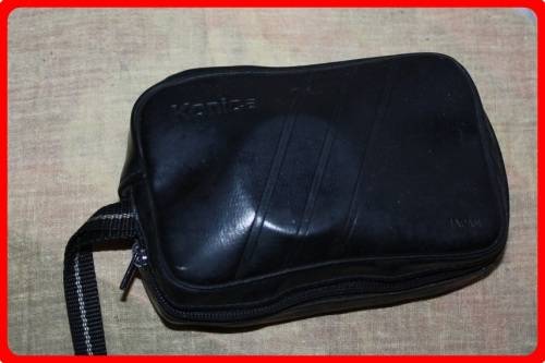 VINTAGE KONICA POP CAMERA WITH CASE AND LENSE COVER SOLD AS IS