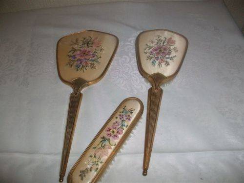 Nice vintage set of brush and mirror and comb set items are in good used condition as per pictures for one bidplease have a look at my other listings *free sprit* Thank you