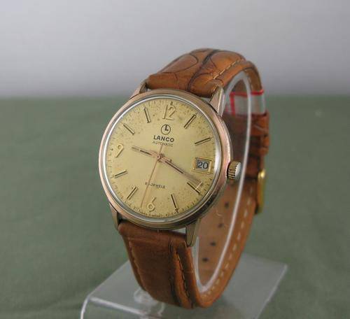 Vintage Lanco Automatic Wrist Watch. Rose Gold plated. 25 jewels movement, water proof, antimagnetic, stainless steel, genuine leather water resistant strap. Size: 40 x 36 mm. In good working order. 3 month movement warranty. Free shipping & insurance!
