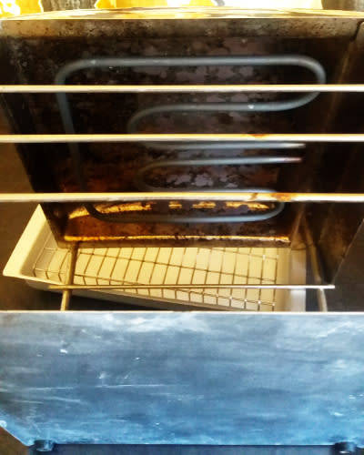 Separate broiling wire racks and large removable aluminium drip trays are easy to clean.