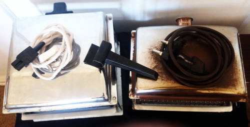 Both TV Braais have grilling/braaing trays, electric cables with plugs both ends.