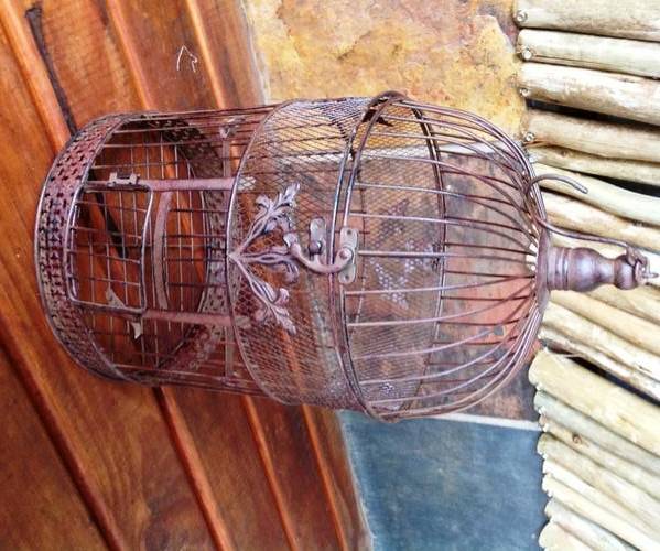 ADD STYLE WITH THIS RUSTED LOOK BIRD CAGE IT OPENS FROM THE TOP LIKE A LID TO DISPLAY FLOWERS, TEDDY BEARS ETC. THEY ARE STYLISH AND GIVE CLASSIC VINTAGE LOOK. GREAT FOR WEDDING PROPS.