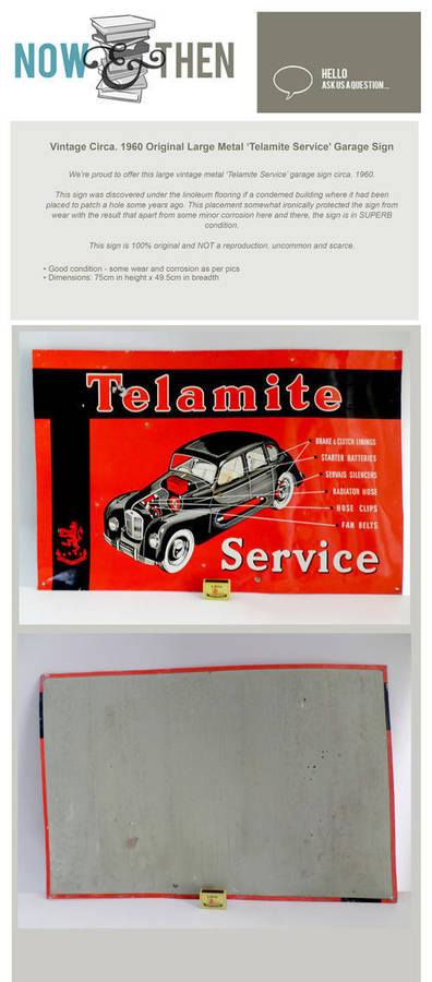 VINTAGE LARGE METAL 'TELAMITE SERVICE' SIGN CIRCA.1960