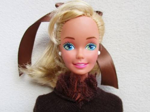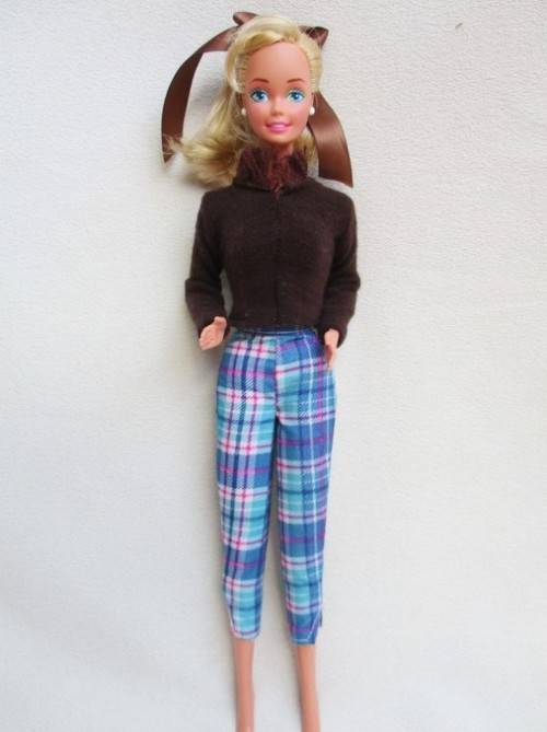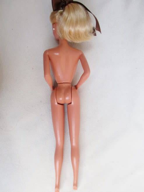 30CM TALL AND IN VERY GOOD CONDITION WITH ORIGINAL EARRINGS AND SOFT SILKY HAIR IN A PONY TAIL AND SIDE BANGS. HER CLOTHES ALSO LOOK AS IF THEY MAY BE ORIGINAL BUT I AM NOT SURE ABOUT THAT. SHE HAS PERMANENTLY BENT ELBOWS AND KNEES THAT BEND WITH A CLICK. MARKED ' MATTEL INC 1966 MALAYSIA' ON HER BACK AND 'MATTEL INC ' ON THE BACK OF HER HEAD. REFER IMAGES