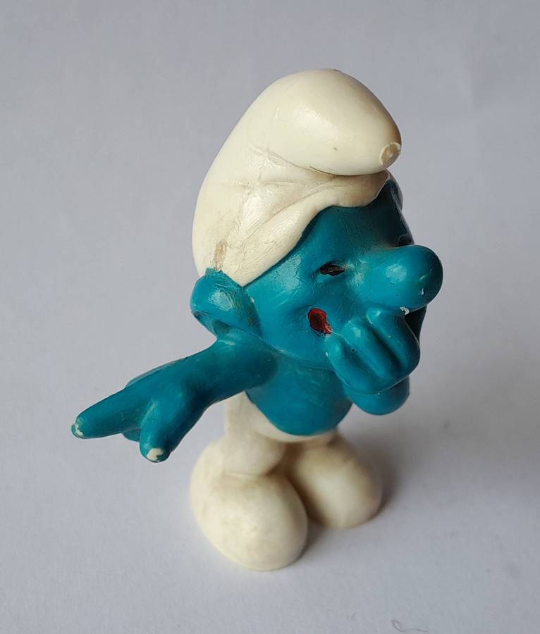 Vintage Laughing Smurf Vinyl Figurine by Peyo, West Germany.
